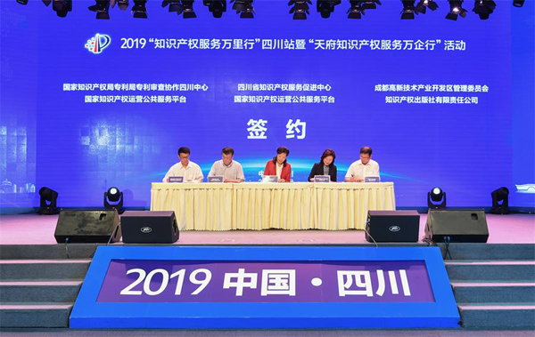 6月24日,2019年“知识产权服务万里行”四川站暨“天府知识产权服务万企行”活动启动仪式在成都高新区菁蓉汇举行。本次活动是国家知识产权局第二次在四川举办“知识产权服务万里行”活动。活动现场,成都高新区获国家知识产权局授牌“知识产权新经济示范园区”。