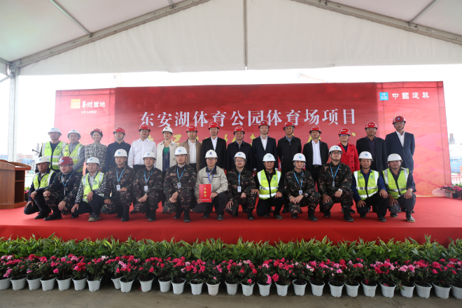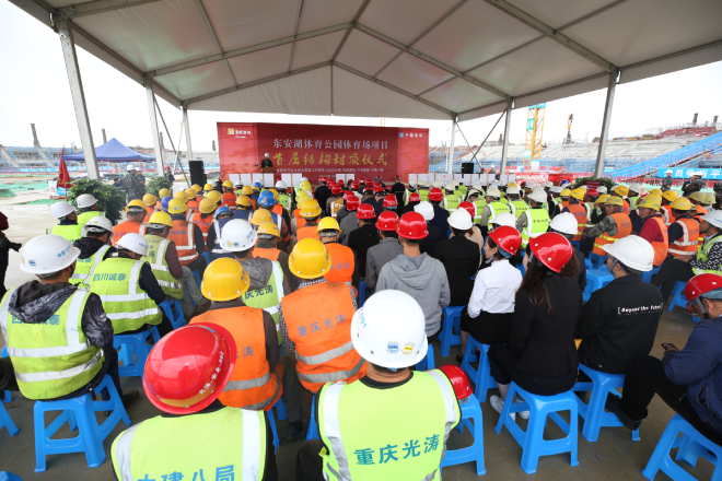 2019年10月15日,由中国建筑第八工程局有限公司主办的东安湖体育公园体育场首层结构封顶仪式,在成都龙泉驿区东安湖体育公园建设现场举行。成都经开区住建局党组书记、区大运办常务副主任崔坤龙,区政府办调研员、区大运办副主任曾代华,华润置地工程部副总经理、华润置地驿都房地产有限公司总经理张亚伟,中建八局有限公司西南公司总经理王洪等出席本次活动。