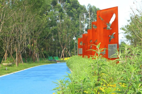 长流河景观示范带内还通过设置休闲长廊、景观步行道、自行车道、慢步道、亲水平台等,满足市民的多种休闲方式,为市民提供更多健身锻炼、休闲小憩的绿化开敞空间。徐徐展翅的飞鸟、憨态可掬的小羊、活力四射的人物塑像……整个绿道设计将绿色、生态与体育健身、文化创意等融合起来,一系列景观打造突显了长流河生态、人文、和谐的理念,使其逐渐成为市民心中炙手可热的打卡地。