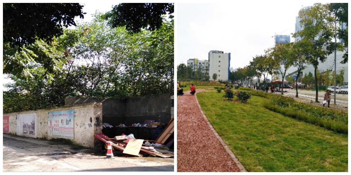 针对这一现象,街道积极协调成都市土地储备中心,借用公交站点背后闲置空地进行微绿地打造,将原来堆满建渣、裸土、环境脏、乱、差的闲置空地改造为现在集健康步道、休闲座椅的4000平方米微绿地小游园。