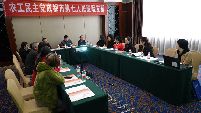 农工民主党市七医院支部主委段彬传达学习了“不忘合作初心,继续携手前进”文件精神,总结了支部一年以来的取得的成绩,并结合主题教育要求,谈了他对今后支部如何贯彻文件精神的思考。