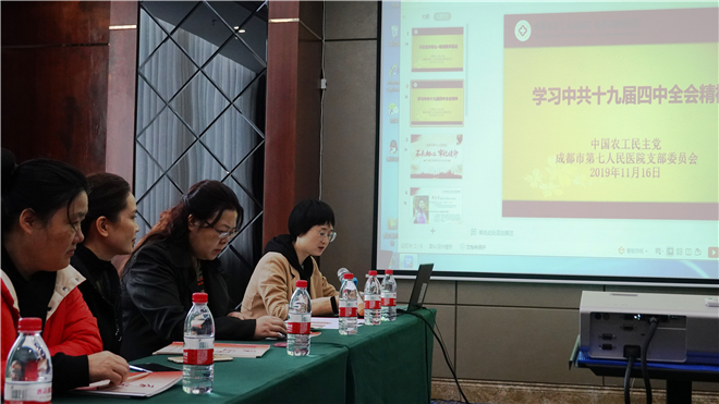 会上党办负责人余江兰带领大家学习了中共十九届四中全会精神和黄文秀、李科同志的优秀事迹,传达了有关中国特色社会主义制度和国家治理体系的若干重大事项,引导农工民主党支部要切实把思想和行动统一到领悟全会精神与开展主题教育上来,以学习促思想促工作,不忘合作初心,继续携手共进。随后党员们围绕活动主题进行了交流发言,介绍了自己理论学习的收获,并着重阐述了对于如何结合自身岗位工作实际,践行初心使命,携手共建助推医院改革发展的思考。