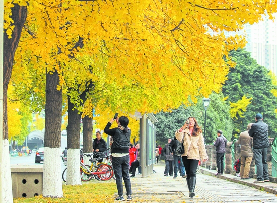 昨日的成都天气晴好,满树的银杏叶经霜过后变得金黄。在漫天金黄的映衬下,银杏树下的每一张笑脸饱满而真挚,每个人都在用自己的方式记录和表达着对城市之美的感动。