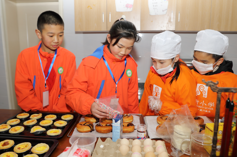 “创客空间”更成了孩子们体验探索、收获快乐的地方。烘焙空间里,孩子们探究蛋液配比,制作蛋挞;在剥壳空间,孩子们探究碱水煮叶中纯碱与烧碱的比例、时长,试刷叶肉、漂白,小心翼翼地用牙刷刷叶子的表面,制作精美的叶脉书签;智能机器人空间里,孩子们学习使用scratch编程猫软件制作游戏《大鱼吃小鱼》;艺美工坊中,孩子们学习纸浆颜料的制成方法,制作纸浆画;音乐时空里,孩子们利用自制乐器为歌曲伴奏,表演唱的形式嗨翻全场,更有小会员拿起话筒和小创客们现场“拉歌”……