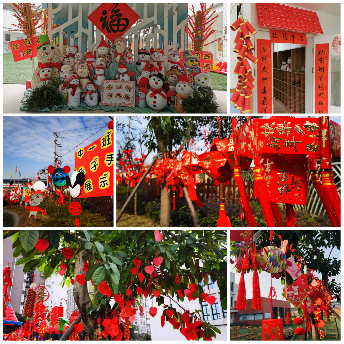 幼儿园里一片红红火火的景象,“可爱的雪娃娃”、“甜甜的糖葫芦”、“红彤彤的灯笼”、“火红的鞭炮”、“满载希望的福气卡”等亲子手工作品,无不展现着孩子、家长、老师对新年的期盼。