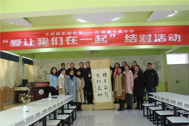 松藩县十里小学走进大邑县东街小学,开展“爱让我们在一起”结对活动。活动中,两校就教育教学管理经验在梦想教室进行了交流。东街小学李英姿向来宾介绍了学校书香文化建设工作;德育副校长王炯焱交流了培养书香少年的“书香德育”工作;教务处陈丽主任对书吧式课堂教学3.0版本探索工作进行了交流;张伶俐主任分享了东小特色阅读工作——数学拓展课程。十里小学在对东街小学书香校园建设工作表示赞许,并希望通过真心实意地交流、交往,为两所学校的发展带来新的契机。(邓林钢)