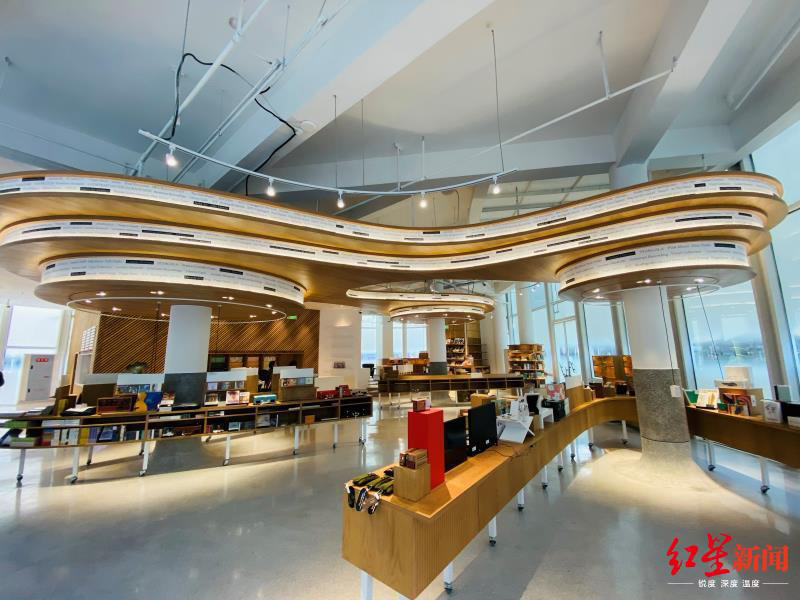 如果你去过太古里的方所,充满质感的木楼梯一定是不容错过的拍照“打卡”处。通向方庭二楼的楼梯,也延续了这样的设计。不过,当走上楼梯来到二楼之后,以磁场云的线条结合圆柱又仿佛让你进入星光下浩瀚的书海。记者发现,除了延续方所高品质的选书之外,文明的巡礼、地铁上读“哲学系”、爱书人必点的“黑拱门”套餐、好好睡觉、“成都·成都”系列图书等活泼灵动的主题书架,提供了在不同场景下的选书推荐。