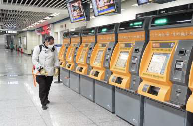 虽然乘车人数少,但防疫工作却一点不敢减轻。据戴香琼介绍,车站在原有清洁消毒基础上,增加消毒频次,确保地铁站内电扶梯扶手、自动售票机、座椅、闸机等区域及设备设施的清扫与消毒每日不少于4次;针对客流较大的重点车站,每2小时进行一次清扫与消毒。同时,在地铁各站的出入口外和站内还分别设置了隔离区。