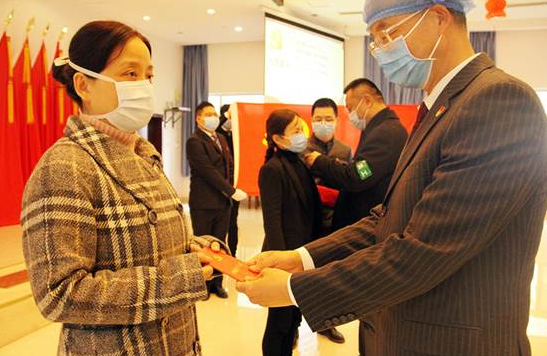 宣誓结束后,入党介绍人为预备党员佩戴了党员徽章,赠送了党章。