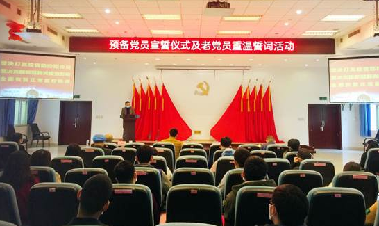 活动在雄壮的《国际歌》歌声中开始。四名护旗手随后护送党旗入场。面对鲜红的党旗,“火线入党”的中共预备党员万梅、宣立航及全体党员举起右手,庄严宣誓,“为共产主义奋斗终身”!部分入党积极分子代表现场观礼。
