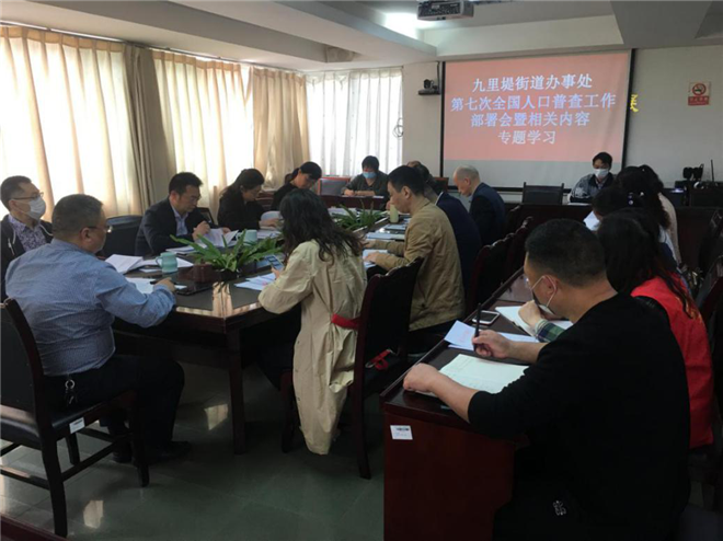 “一动员”:在不放松疫情防控工作和复工复产的前提下,九里堤街道于4月28日召开第七次全国人口普查工作部署动员会,街道办事处班子成员、社区主要领导及街道办事处各科(室)长参加。会议强调第七次全国人口普查综合试点工作的重要性和艰巨性。并成立街道第七次人口普查综合试点工作领导小组,要求各科室和社区按照职能分工,各负其责、通力协作、密切配合,增强工作责任感和紧迫感,认真做好前期基础工作,抓好第七次全国人口普查综合试点工作。同时西南交大社区利用居民代表大会、院落坝坝会、社区小广播等形式,向居民群众宣传人口普查工作重要性和时间节点,形成了“人口普查利万家,提供信息靠大家”的良好舆论氛围,为第七次全国人口普查工作有序开展奠定了基础。