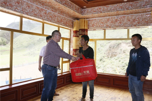 四川新闻网成都6月15日讯 为深入贯彻落实中央、省、市、区对脱贫攻坚工作的重要指示和决策部署,持续做好老少边穷地区对口帮扶工作,6月10日至12日,温江区金马街道党工委副书记温家兴带领街办工作组一行8人,深入色达县杨各乡、旭日乡、然充乡等三个对口帮扶单位和色达县民政局开展了走访慰问和集中座谈活动,为三个对口帮扶单位捐赠了帮扶资金20余万元,为20余户贫困群众送上了米、油等生活物资,让3名援藏干部充分感受到了组织的关心和关怀。