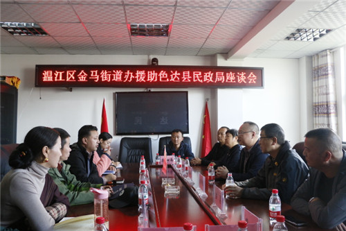 据座谈了解,这已经是温江区对口援助色达县的第10个年头。近年来,温江区金马街道采取多种举措强化对口帮扶,让杨各乡、旭日乡、然充乡先后成功脱贫摘帽,也让温江区金马街道与三个对口援助单位结下了深厚的友谊。