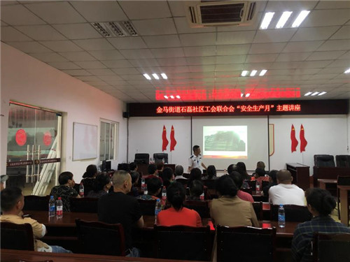 6月2日,金马街道石磊社区工会联合会举办“安全生产月”主题教育讲座,邀请五进消防防火中心专家为大家讲解火灾逃生、灭火和自防自救能力等知识,以身边案例提醒大家重视消防安全隐患,增强自我防范意识,受益企业职工150余名。