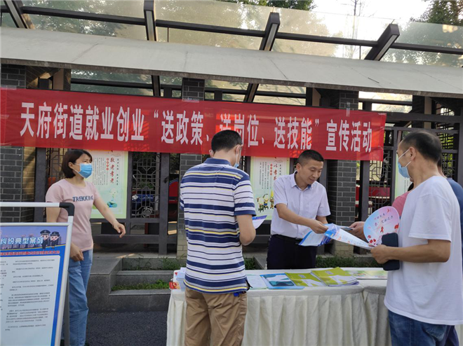四川新闻网成都6月28日讯 为进一步做好街道退役军人就业创业工作,让辖区广大退役军人更多了解国家关于退役军人就业创业等相关政策,积极营造良好的社会氛围,2020年6月24日,温江区天府街道开展退役军人就业创业“送政策、送岗位、送技能”宣传活动。