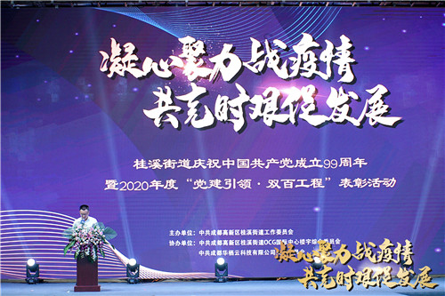 四川新闻网成都6月29日讯 6月29日下午,来自成都高新区桂溪街道各基层党组织、各综合党委、桂溪辖区党建联盟成员单位的150余名党务工作者和党员汇聚在OCG国际中心,参加桂溪街道“2020年度‘党建引领·双百工程’表彰活动暨第六届‘榜样的力量’优秀共产党员示范巡讲活动”,成都市委办公厅机关党委书记余丹、市委办公厅机关工会主席、一级调研员罗栩,市委办公厅机关团委书记、综合一处副处长郭晓东,成都高新区党群工作部组织处处长王百春,成都高新区桂溪街道党工委班子成员、调研员出席。
