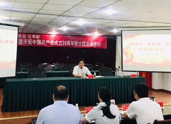 四川新闻网成都7月2日讯 为庆祝中国共产党成立99周年,重温党的光辉历程,进一步激发党员干部的使命感和责任感,7月1日上午,温江区永宁街道党工委书记郭友晟结合街道工作实际,以《践初心、强担当、比奉献——“有事你找我”》为题,在街道会议室为机关全体党员、社区“两委”、退管党支部书记、“两新”党支部书记、社区党小组长上了一堂“不忘初心、牢记使命”主题教育专题党课。号召大家用党的光辉历史和优良传统润养党性,把握当下发展要求,进一步提振干事创业的精气神,为永宁建设添砖加瓦。