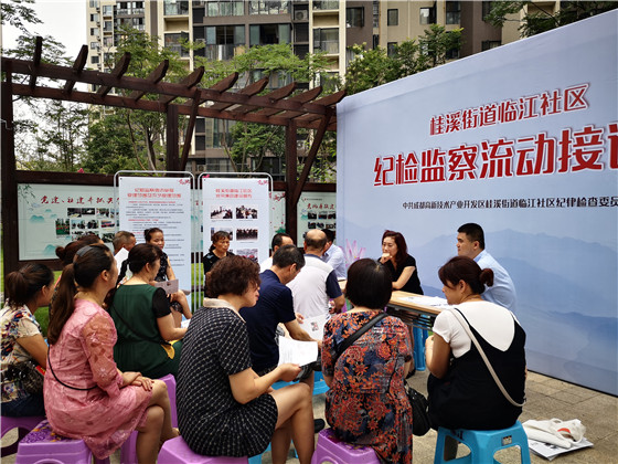 四川新闻网成都7月10日讯 为全面贯彻落实打造开放式纪委监委的部署安排,积极推动解决群众关心的热点难点问题,7月10日上午,成都高新区桂溪街道临江社区在临江苑东区廉政长廊组织开展纪检监察流动接访暨“廉洁同心”坝坝会,成都高新区纪工委包片驻点临江社区干部潘青龙,临江社区党委副书记、居委会主任王斌及临江社区两委委员参加。