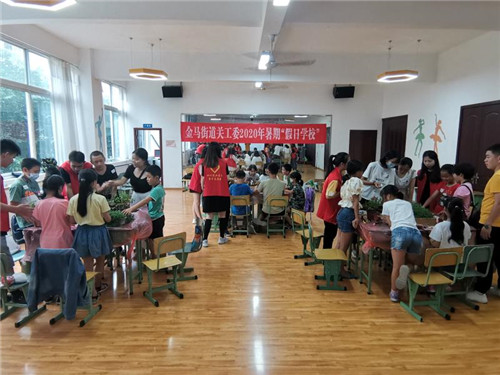 四川新闻网成都8月26日讯 为丰富辖区青少年暑期生活,充分调动和培养辖区青少年的合作能力、动手能力和想象力,7月中旬以来,由温江区金马街道关工委主办、各社区承办、为12天的“弘扬时代新风。争做新时代好少年”暑期“假日学校”在各个社区党群中心如火如荼的举办中,10多个系列课程让社区青少年在充分感知、分享童年乐趣的同时,收获了更多的安全、环保、科学及文化知识。