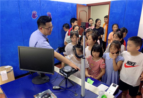 8月13日,金马街道关工委、团工委、温泉社区联合大成社会工作服务中心组织青少年走进金马街道派出所开展青少年法制教育活动,派出所张警官为青少年展示了警用“八件套”,带领青少年参观了110警务接警中心和综合指挥中心,讲解了预防诈骗知识,进一步增强了社区青少年法制观念和守法责任意识。(陈凡坪)