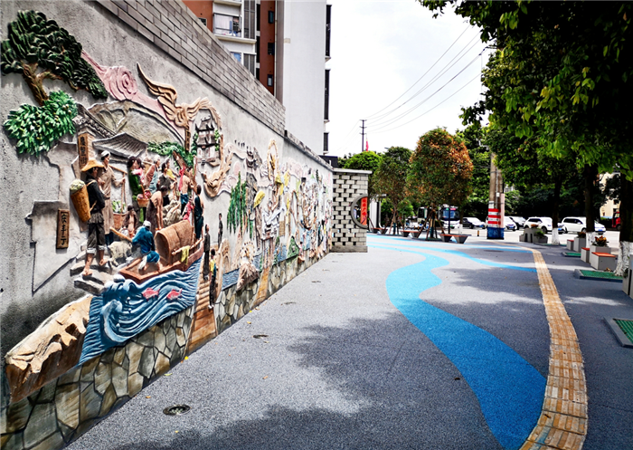 欣源广场位于温江区永康路与战备渠交叉口,占地面积866.2平方米。2020年4月,柳城街道以“两拆一增”为抓手,对欣源广场进行了改造。改造拆除1处危房13.5平方米、围墙57米。作为黄金路社区新生活示范场景的子项目之一,欣源广场同步添加了以老西门记忆浮雕墙为主的天府文化。该广场在为居民提供休闲驻足场所的同时,传承了当地历史文化底蕴,提升了社区融合度和居民邻里温度。