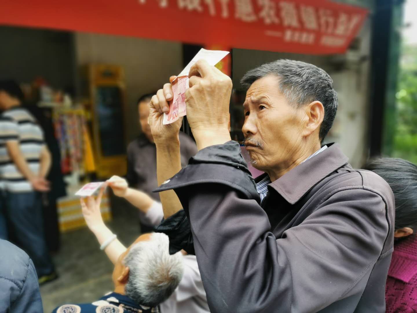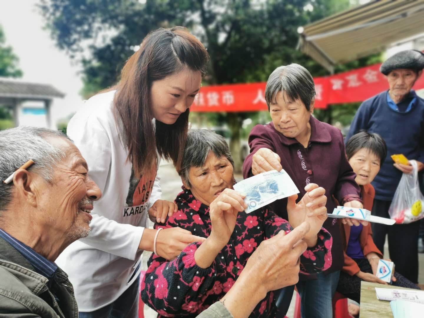 一大早,成都农商银行天府新区支行工作人员在惠农微银行旁开展金融知识宣传,向来往的群众发放宣传折页,工作人员还向现场群众面对面讲解人民币真伪识别,引导农户了解金融知识,提醒农户警防电信诈骗。