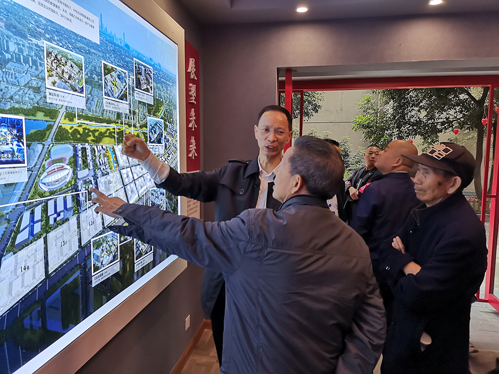 社区两委王忠担任“光荣印记”微创馆的导游,为现场的观众讲解场馆各部分的内容。