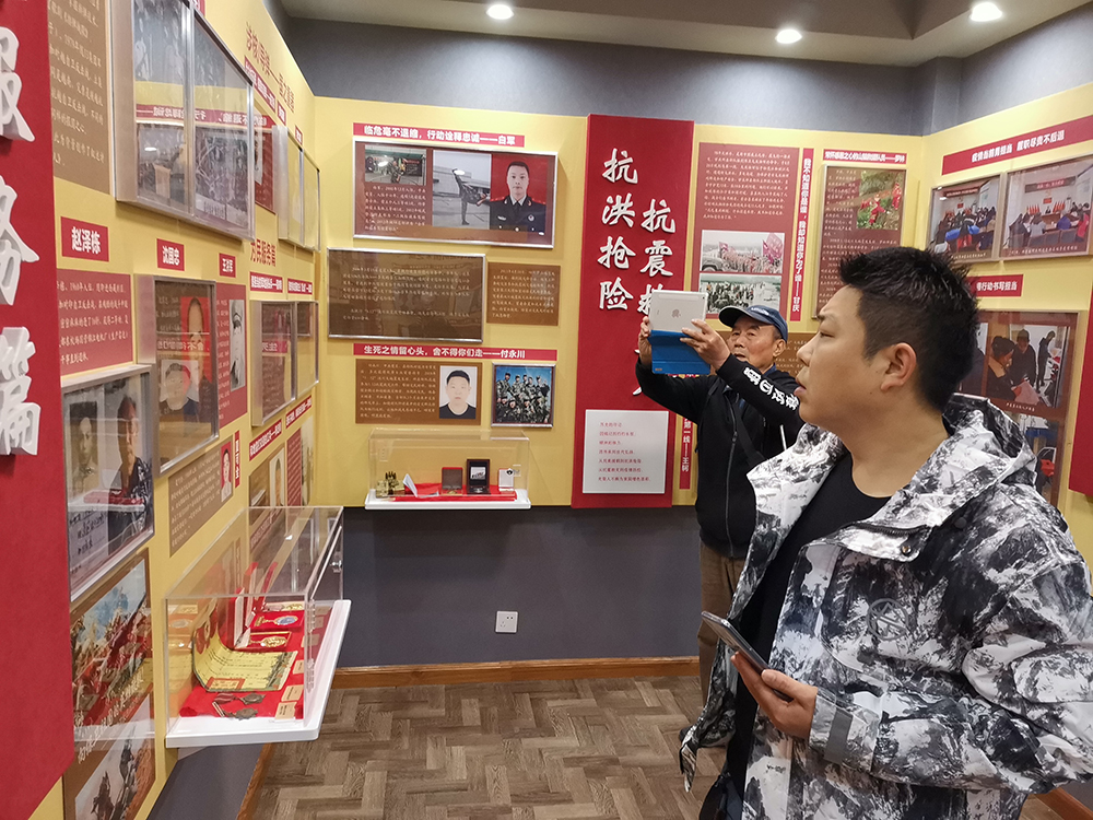 ——“光荣印记”微创馆分为5大板块,从抗美援朝到对印、对越自卫反击战,从抗震救灾到疫情防控,一代又一代的光荣人前赴后继,用奉献和付出换来了今天社区的荣耀,用一个一个的精彩的故事汇聚成了今天的光荣。”