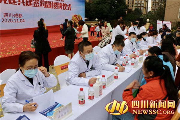 仪式上,保和街道党工委与成都市第六人民医院党委签订了深化区域合作党建共建协议书,并向共建的社区及支部授“党建结对”牌匾。保和街道和顺社区党委书记钟山代表共建社区与成都市第六人民医院党支部书记代表签订了党支部深化区域融合党建结对合作协议书。随后,成都市第六人民医院专家为辖区居民开展了义诊活动。