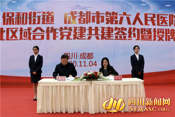 四川新闻网成都11月4日讯(郭晓彤 摄影报道) 为进一步丰富党建形式,搭建党建平台,深化区域合作,为社区发展治理注入动力、提供保障,11月4日上午,成华区保和街道与成都市第六人民医院举行党建共建签约暨授牌仪式。成都市第六人民医院党委班子,以及保和街道党工委班子成员、下辖8个社区党委(党支部)书记参加。