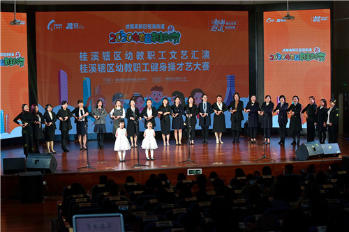 四川新闻网成都11月9日讯 11月7日,成都高新区桂溪街道“爱成都·迎大运”之“家在桂溪·乐活贵栖”2020年桂溪街道首届稚龄节桂溪辖区幼教职工文艺汇演暨健身操才艺大赛在成都教科院附属学校举办。此次文艺汇演和健身操比赛由辖区23所幼儿园教师任选其中一项报名参加,才艺表演形式不限,旨在给老师们提供展示的舞台和相互交流的平台。