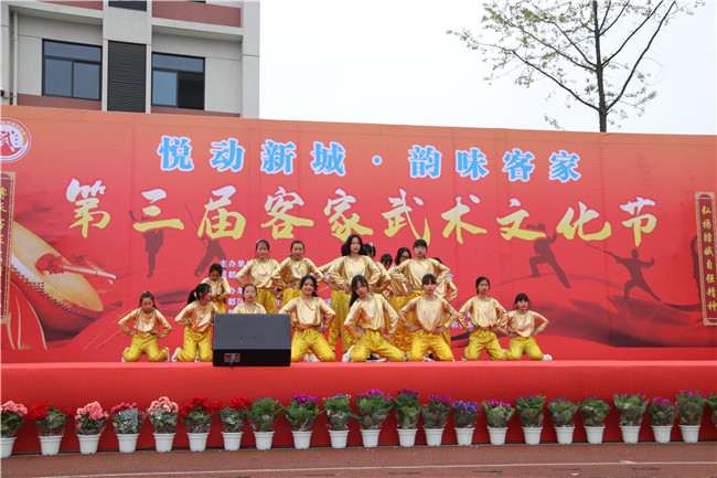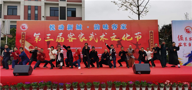 四川新闻网成都11月25日讯 石板滩街道是纯客家区,东山五场之首,客家人素有习武强身之风。为推崇国粹武术,实践升庵文化与韩娥五行拳的整合,传承武术精髓,弘扬天府文化,2020年11月24日,石板滩街道第三届客家武术文化节开幕式在木兰中学举行。