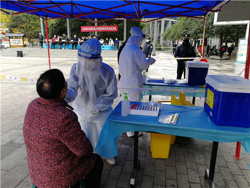 演练现场,被检测对象在入口进行体温筛查后由志愿者引导到信息登记处进行身份登记,再到采样处进行咽拭子采样,最后由出口离开。整个过程清楚明了,数分钟内就完成了60名被检测对象的采样工作。成都市疾控中心专家对演练成果给予了充分肯定。