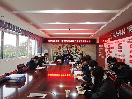 四川新闻网成都12月31日讯 2020年12月25日,市民政局机关党委书记杨云江、市委组织部组织二处副处长徐雪、市委组织部组织二处干部黄航飞、高新区社治保障局一级调研员张义薇、高新区党群工作部组织处副处长万能善到中和街道朝阳社区对社区“两委”换届及疫情防控工作进行督导。中和街道党工委副书记、纪委书记陈纲、调研员章树其、党群办主任薛彬、民政办主任张富兴、社区两委成员参加。