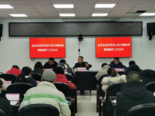 四川新闻网成都1月7日讯 为准确掌握农村劳动力资源利用情况,有效促进农村劳动力转移就业工作,积极推动更高质量的就业,探索农村劳动力就业工作推动的瓶颈与短板,结合返乡农民工疫情防控,今冬明春农民工服务保障“五大专项行动”工作,1月5日,金堂县城乡创业和农民工服务中心召开农村劳动力实名制系统数据维护工作会议。县城乡创业和农民工服务中心主任陈贤光、县人社局副局长周健、县城乡创业和农民工服务中心副主任周泉锟出席会议。