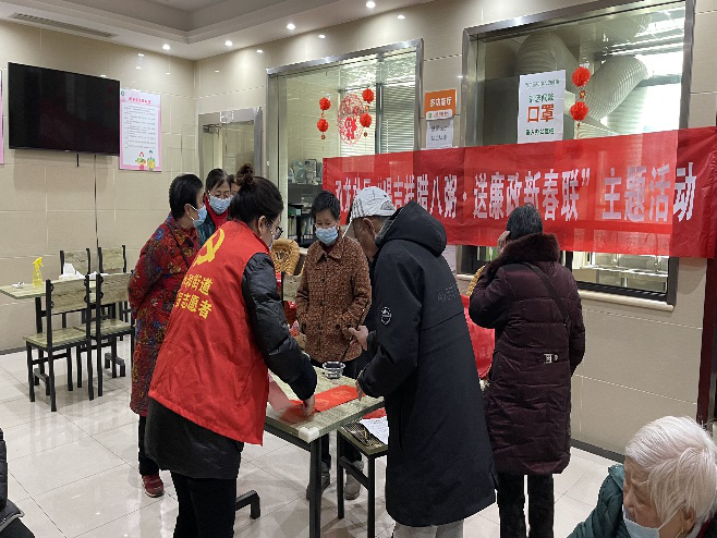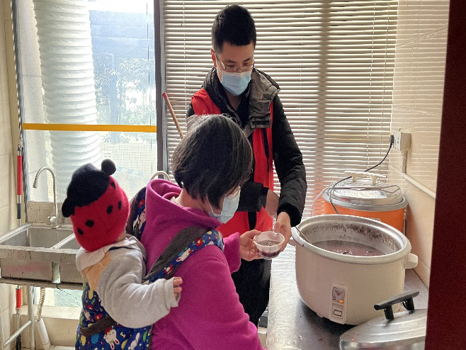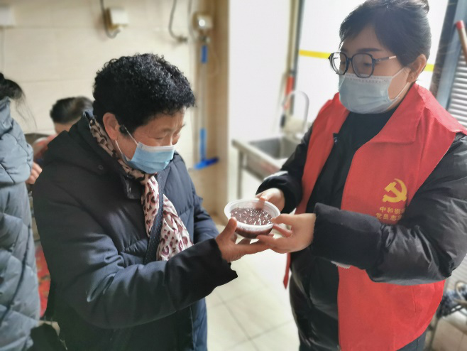 当天一大早,社区志愿者们就开始忙碌起来了。居民们按照疫情防控的要求,在社区日间照料中心有序领取腊八粥,喝上一口热气腾腾的腊八粥,既暖身、健脾胃,又能讨个好彩头,祈福来年身体健康。