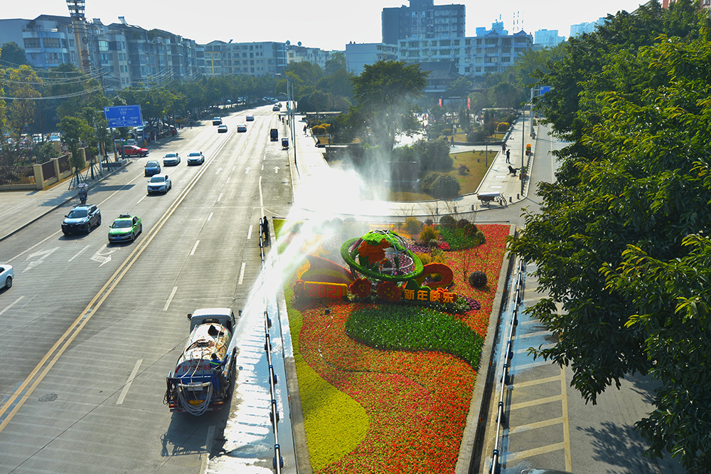 此外,更多节点采取鲜花扮靓,对双流区域内如牧华路、电视台路、航都大街、南昌路、双楠大道等重要道路、节点、公园、地铁站实施春节鲜花氛围营造,栽植各类鲜花约107.8万盆,实施面积约2万平方米,在东升城区、接待寺立交打造平米花境,种植鲜花品种有高杆石竹、报春、郁金香、三色堇、一品红等,营造出全区欢庆春节的浓烈氛围。(张静)
