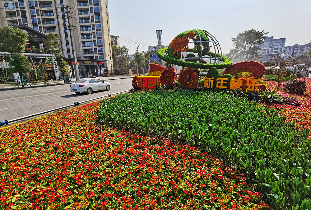 四川新闻网成都2月1日讯 别样的生态雕塑、鲜花扮靓街头……让市民不出城就能享受到别致的绿化风景。当前,双流区正实施一批城市绿化节点打造,为春节、大运会进行氛围营造。