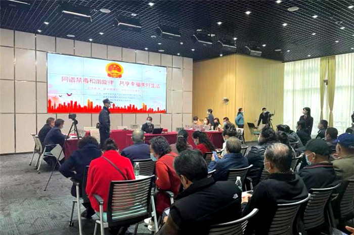 四川新闻网成都3月12日讯 为深入学习贯彻中共中央印发的《法治社会建设实施纲要(2020-2025年)》,不断增强法治宣传教育针对性和实效性,引导全体人民做社会主义法治的忠实崇尚者、自觉遵守者、坚定捍卫者,使法治成为社会共识和基本原则,3月12日,成都高新区桂溪街道联合成都高新区人民法院持续深化“庭审微课堂”法治文化品牌效应,在菁蓉汇8号楼2楼开展“同谱禁毒和谐旋律共享幸福美好生活”的法院庭审进楼宇活动。