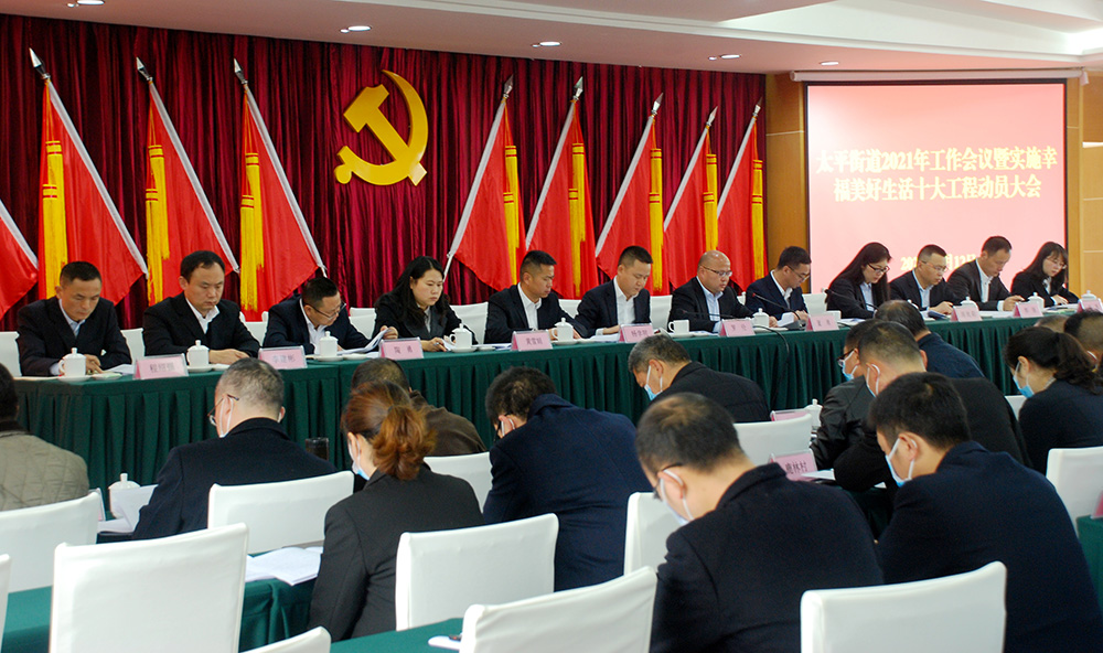 接着,街道党工委副书记、办事处主任董勇总结了2020年工作,并安排部署2021年重点工作。随后,街道党工委副书记、纪工委书记谢启文就太平街道深入实施“十大工程”建设幸福美好生活家园暨2021年40件民生实事工作目标进行了动员部署。