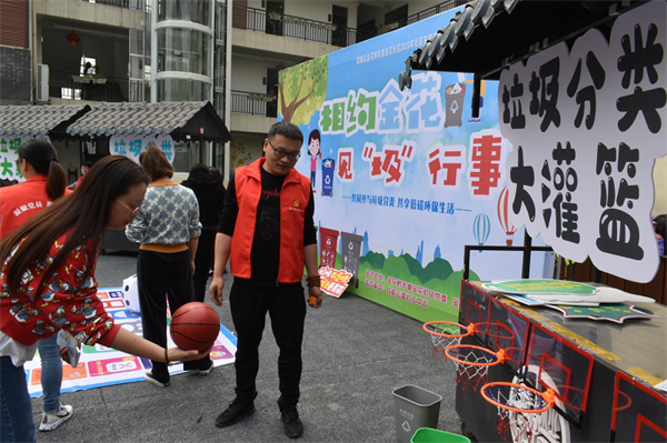 3月30日,由成都市武侯区金花桥街道金花社区党委、金花社区居委会主办、成都云峰社工中心执行的社区发展治理专项保障资金项目“党员服务群众能力提升培训”,在金花社区小广场展开。这是一场集趣味性和学知识为一体的“垃圾分类嘉年华”活动,各小区党支部成员、居民朋友、辖区志愿者等男女老少齐聚一堂,春日阳光映照着一个个泛着红光的笑脸,好不热闹。