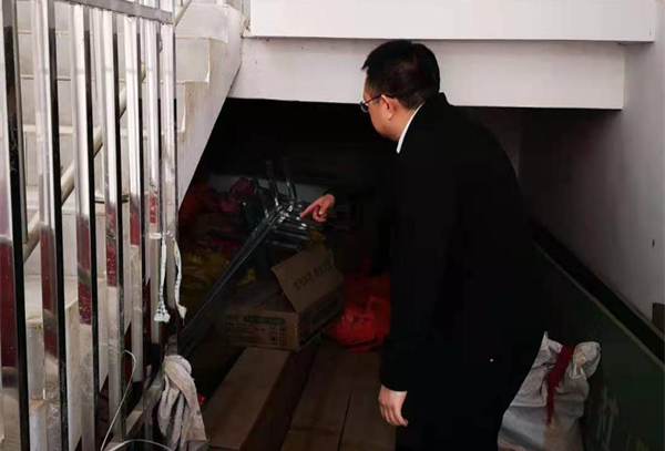 禾丰镇党委书记陈阁斐到查看森林防火灭火物资储备情况