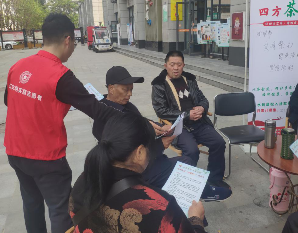 3月23日,学府社区新时代文明实践站组织志愿者在四方茶社开展以“文明祭扫·绿色清明”为主题的宣传活动。