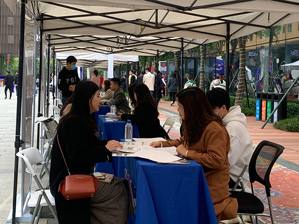 “本次招聘会,桂溪街道及承办单位前后多次与参展企业的及时沟通,实时调整我们的招聘需求和修改设计展示方案,同时,在资源整合方面十分用心,结合我们的招聘需求,定向对接招聘平台,通过线上招聘直播+线下招聘同步开展。希望我们在这次招聘会物色到需要的人才。”参与招聘的龙腾地产有限公司相关负责人介绍说。