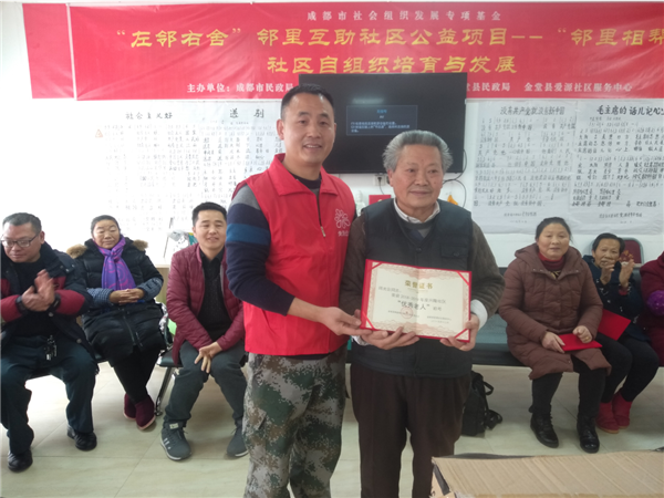 2018年机构承接的成都市慈善总会“左邻右舍”邻里互助社区公益项目先后获得金堂县社区营造优秀案例奖、四川省妇联举办的“四川省第二届妇女儿童公益项目大赛”、成都市妇联举办的“成都市第二届妇女儿童类社会组织优秀服务项目评选”活动决赛资格,并取得优异成绩。
