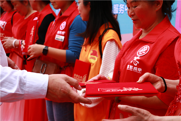 在文艺演出中,一个特别的环节赢得了现场观众的阵阵掌声。一里塘社区向积极参与社区发展治理活动的社区居民骨干代表表示感谢并予以表彰。社区居民骨干用饱满的热情宣誓,弘扬志愿精神,共治共建美好社区。