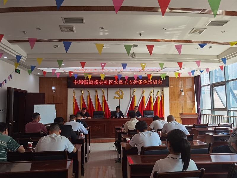 四川新闻网成都4月30日讯 为规范新会社区辖区内在建工地工人工资的支付行为,进一步强化根治拖欠农民工工资工作的监督和制约力度,4月30日上午,中和街道新会社区组织辖区建筑工地负责人在社区三楼会议室召开民工工资支付条例培训会。