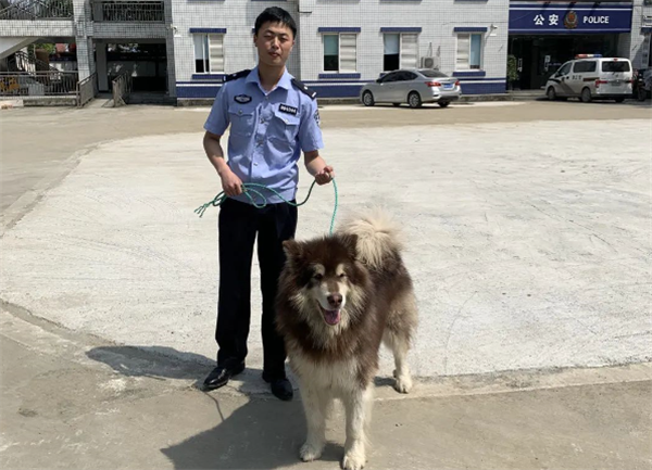 四川新闻网成都5月2日讯 2021年4月30日20时许,彭州公安繁江路派出所民警接到群众报警,一名群众在路过彭白路双牌路口处看见一条阿拉斯加犬,绳索还套在颈部,现场没有发现主人。民警到达现场后多方寻找,没有找到狗狗主人,无奈只能将狗狗带回派出所。