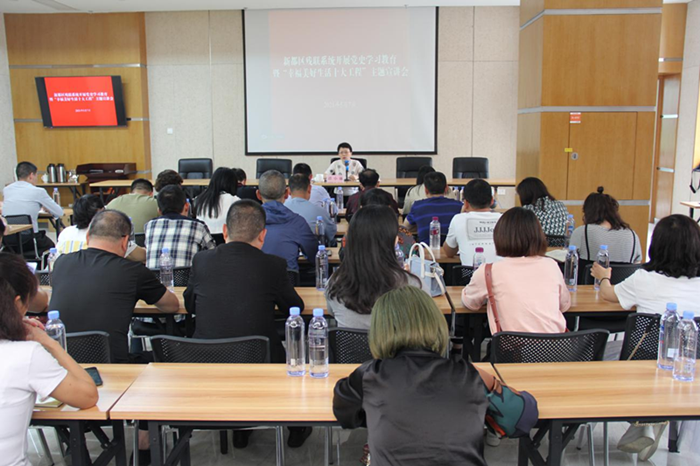 四川新闻网成都5月8日讯 为贯彻落实中央、省、市、区关于开展党史学习教育和“幸福美好生活十大工程”的工作要求,5月7日,新都区残联党组书记、理事长谭小琳在新都区桂湖街道综合文化中心开展党史学习教育暨“幸福美好十大工程”主题宣讲会,区残联全体干部职工、各镇(街道)分管负责人、民生办主任、残联专干和五大专门协会主席及村(社区)党组织书记代表共70余人参加。
