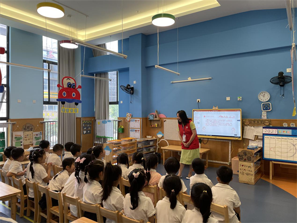 活动中,新华社区与辖区中国银行党员志愿者们图文并茂的让孩子们了解党旗的意义、加深对党旗的认识,引导孩子们传承红色基因,做小小追梦人。通过舍己救人的王二小红色故事的生动讲述,增强与孩子们的有效互动让课堂更精彩,让孩子们感受到革命年代小英雄的勇敢机智,寓教于乐中涵养童心世界。随后社区党员志愿者还为幼儿园入党积极分子教师现场开展了以“践行四讲四有,做合格党员”为主题的宣讲会,鼓舞参会老师积极向组织靠拢,坚决听党话、跟党走。以《廉洁自律准则》为道德“高线”,以《纪律处分条件》为行为底线,自觉遵守各项工作规章制度,在各自的教育教学岗位上尽职尽责,不负“立德树人”使命,努力培养爱党爱国、胸怀理想、不负韶华的时代新人。最后,党员志愿者和孩子们一起合唱“红星闪闪”,孩子们用稚嫩的童音演绎着鼓舞人心的红歌,此起彼伏的歌声表达着自己对祖国妈妈的热爱之情。